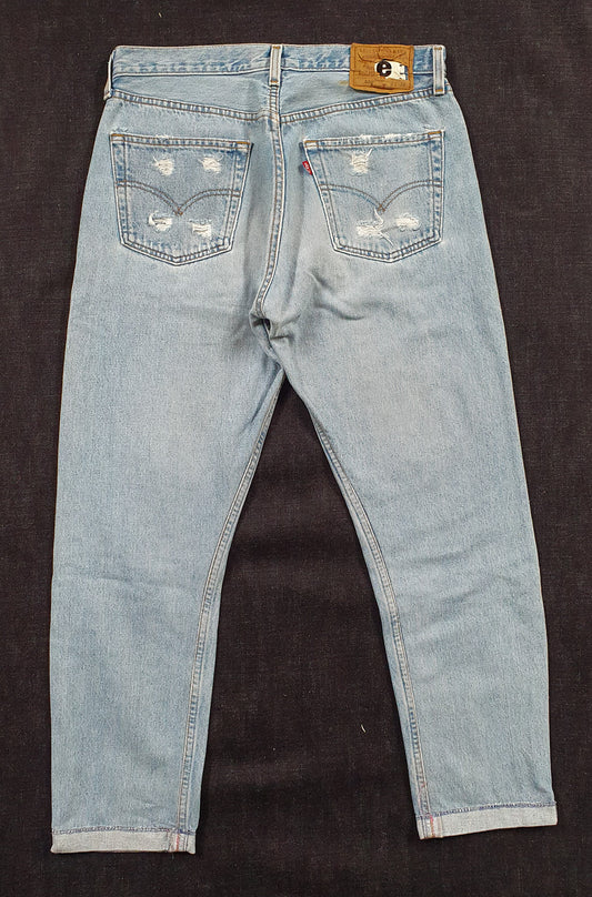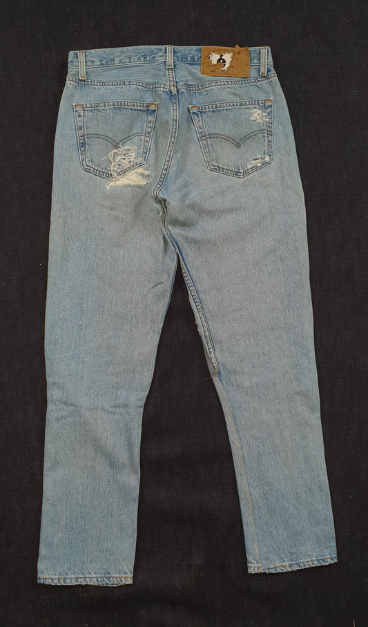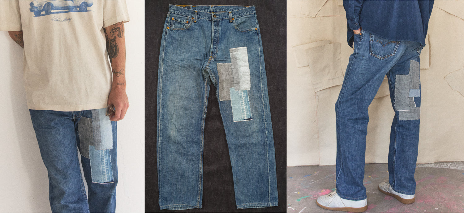 Créations uniques réalisées à partir de vieux Levi's 501 des années 90. Tous les jeans sont repris pour sublimer les imperfections et les trous et donner une seconde vie à ces pièces emblématiques.