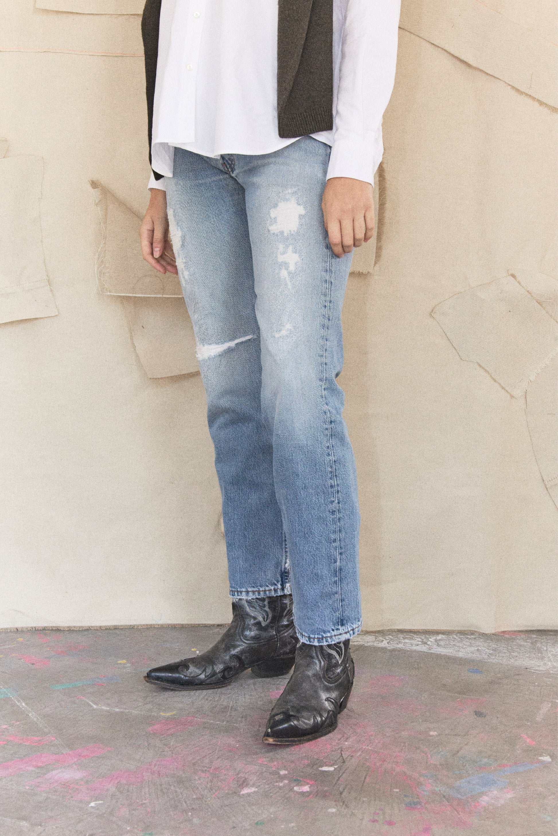 Jean 100% coton dont les trous ont été totalement renforcés avec un effet lissé conservant le caractère élégant de la pièce. Renforcé entre les jambes.