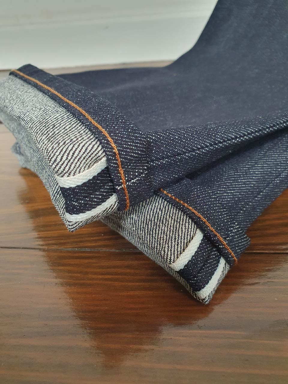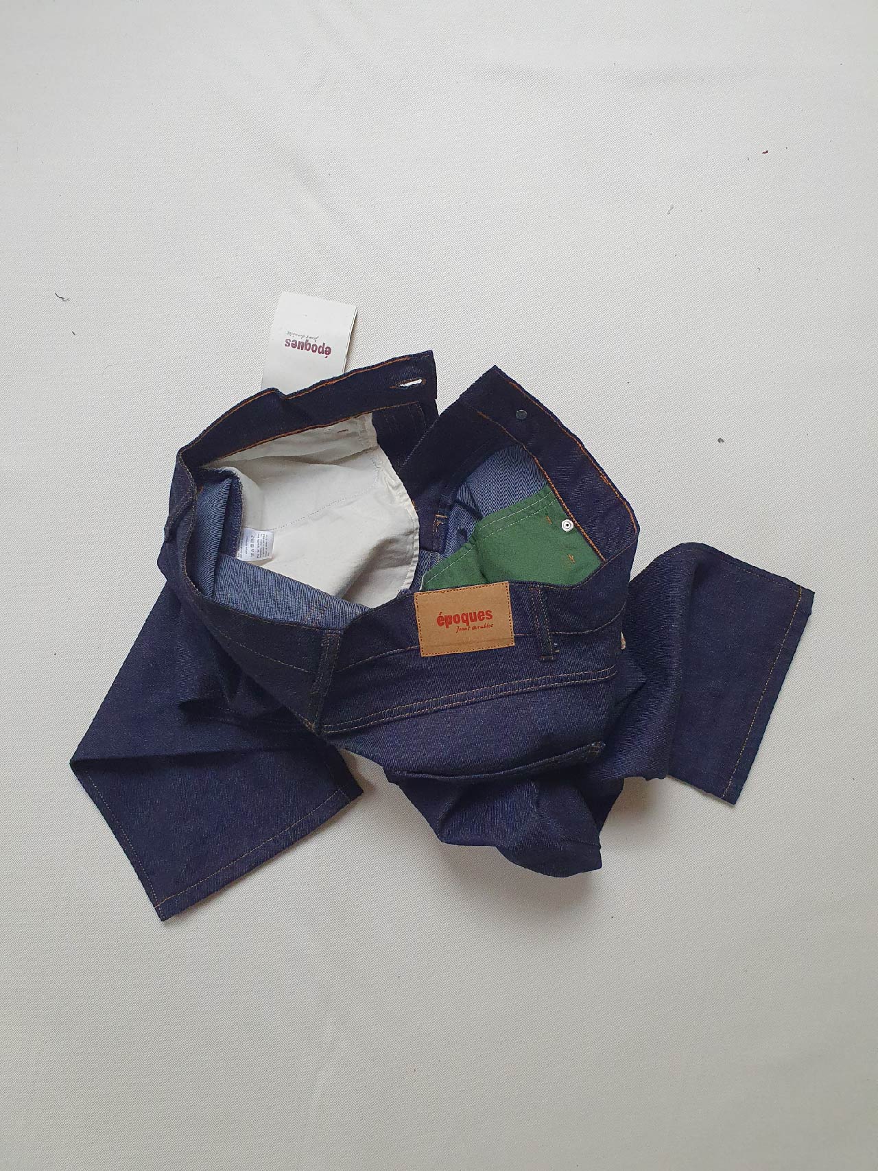 On poursuit notre recherche des meilleurs tissus, et ici direction le Japon, les experts du denim. On s'est sourcé directement chez Japan Blue pour trouver ce tissu 100% coton, 14 oz. Il est plus épais et va obtenir une magnifique patine dans le temps.