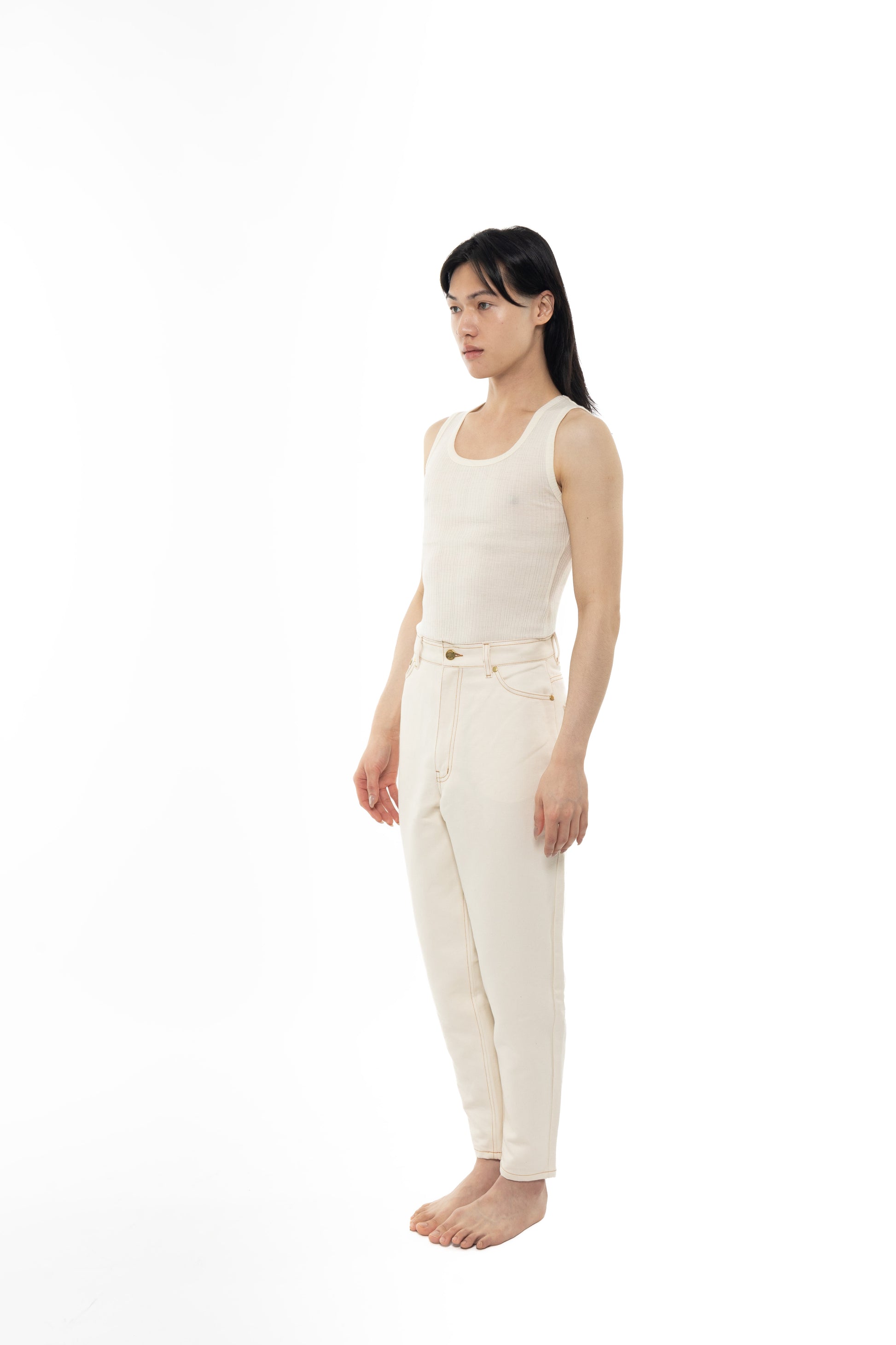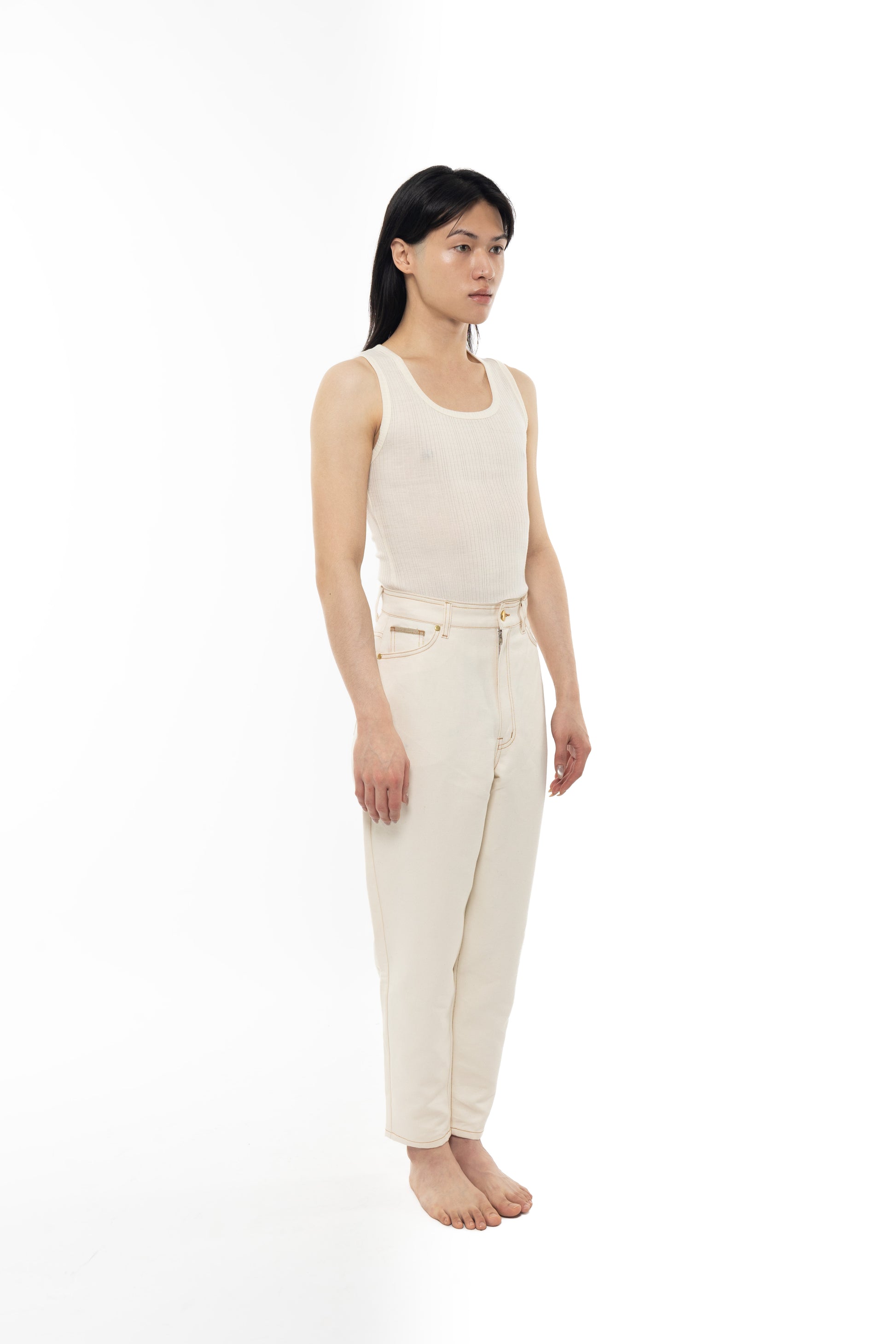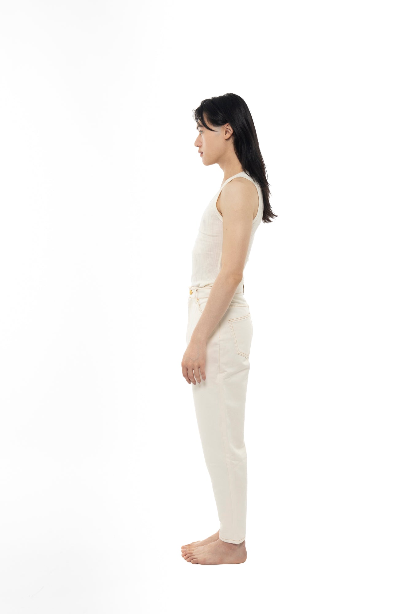 Pour ce jean, nous ne dérogeons pas à la règle. Nous avons à nouveau cherché à créer un jean à la fois robuste et confortable dans des ton écrus. Nous sommes partis sur un jean en matières naturelles robustes, incorporant du lin permettant également d'avoir la légèreté et le confort.