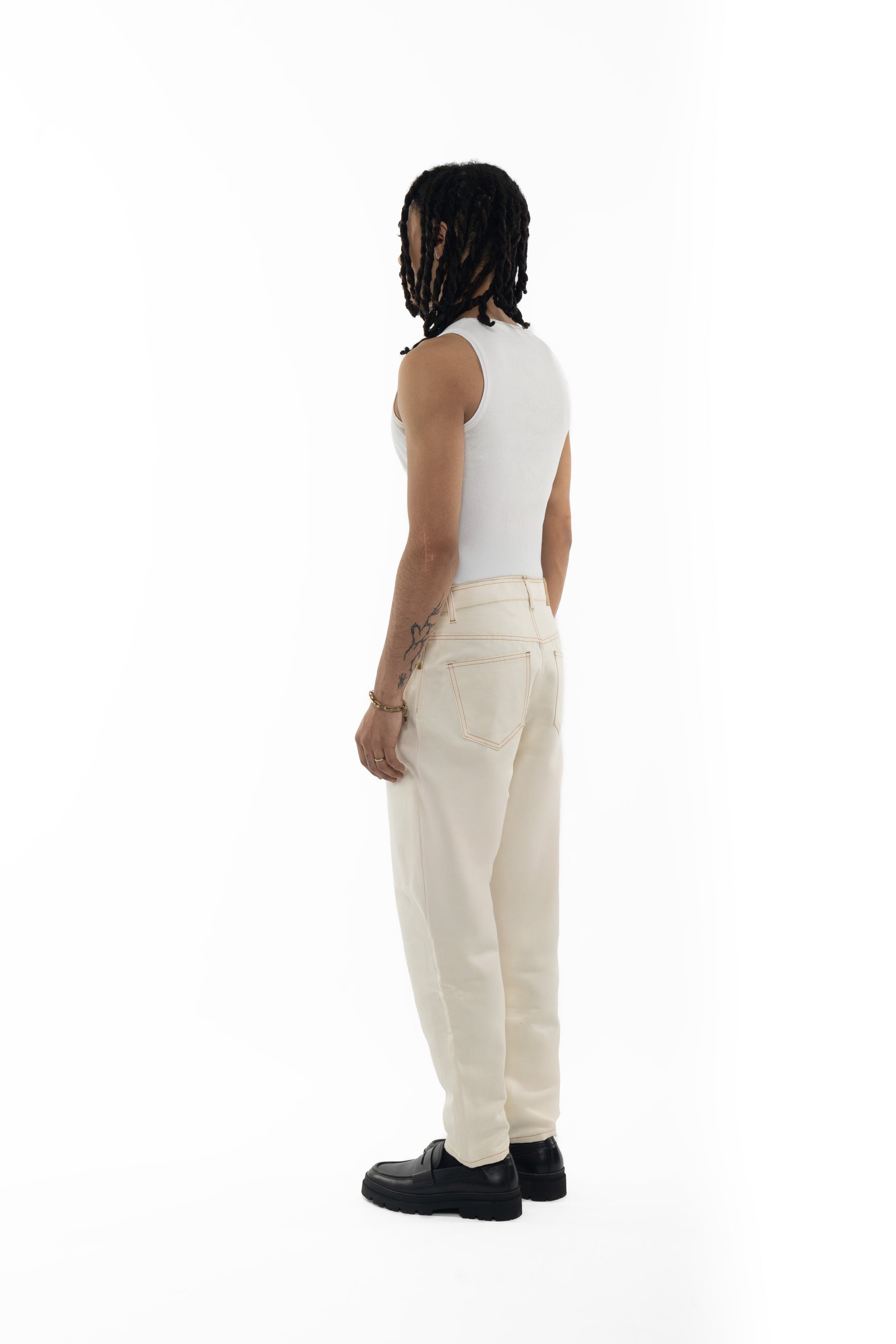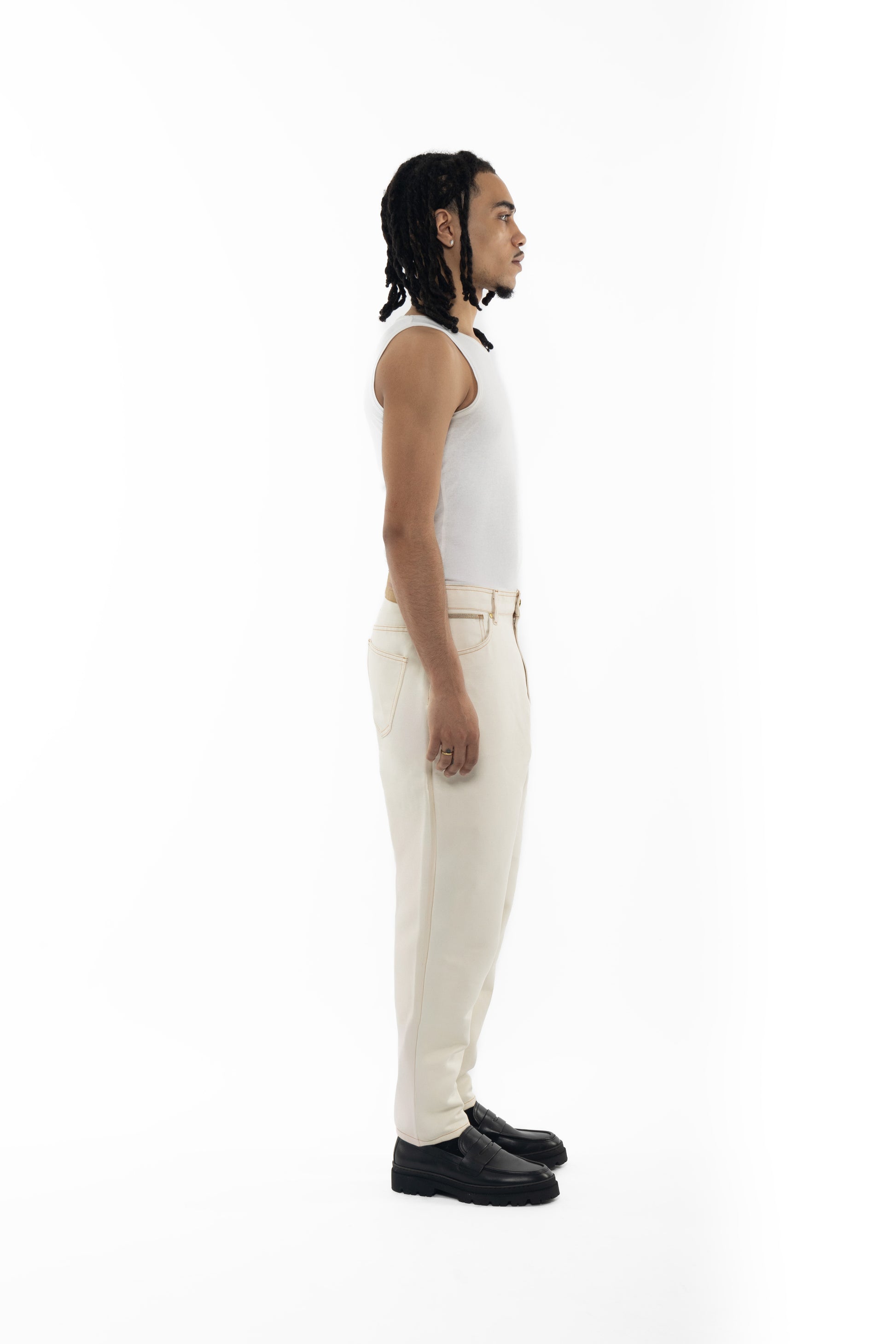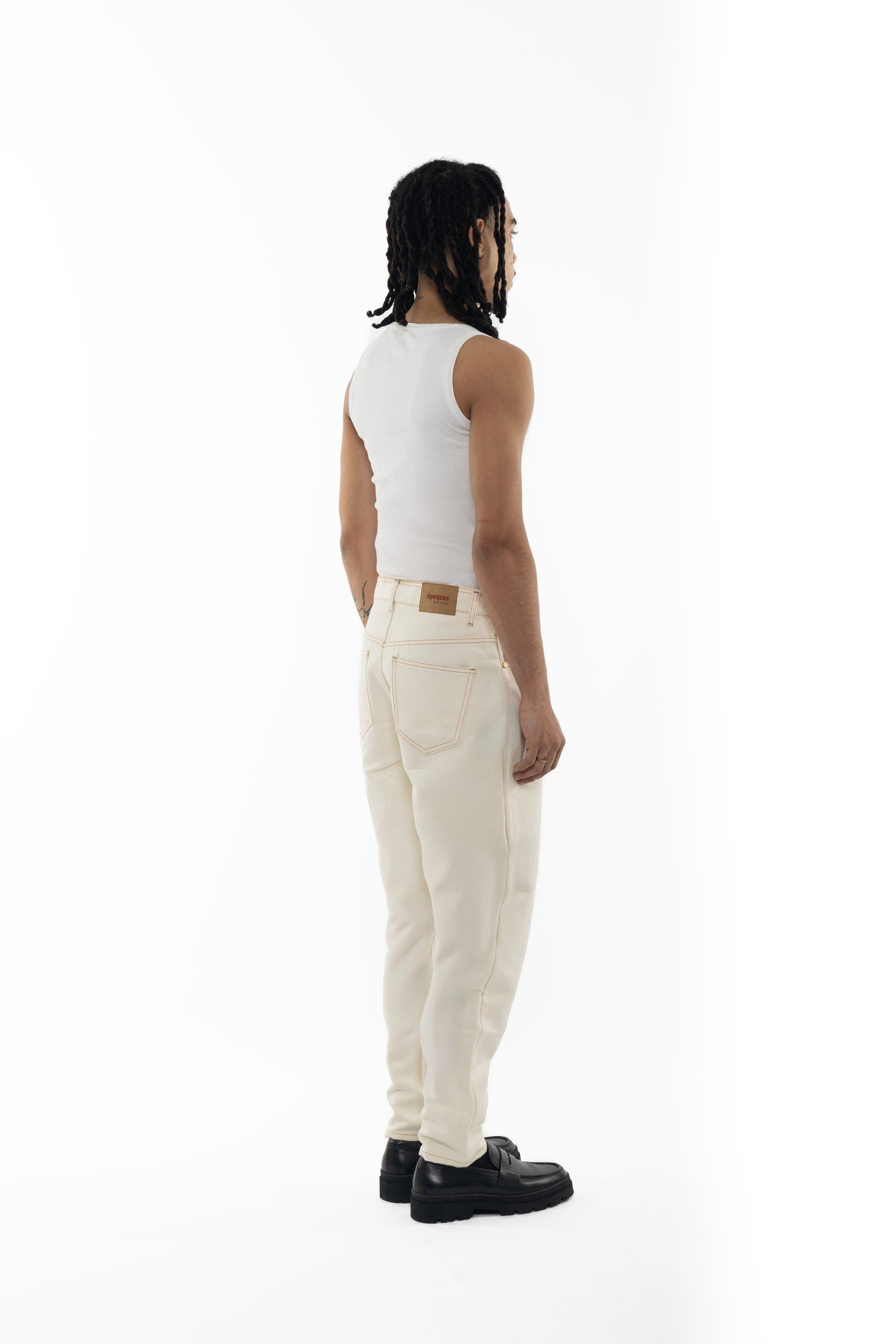 Pour ce jean, nous ne dérogeons pas à la règle. Nous avons à nouveau cherché à créer un jean à la fois robuste et confortable dans des ton écrus. Nous sommes partis sur un jean en matières naturelles robustes, incorporant du lin permettant également d'avoir la légèreté et le confort.